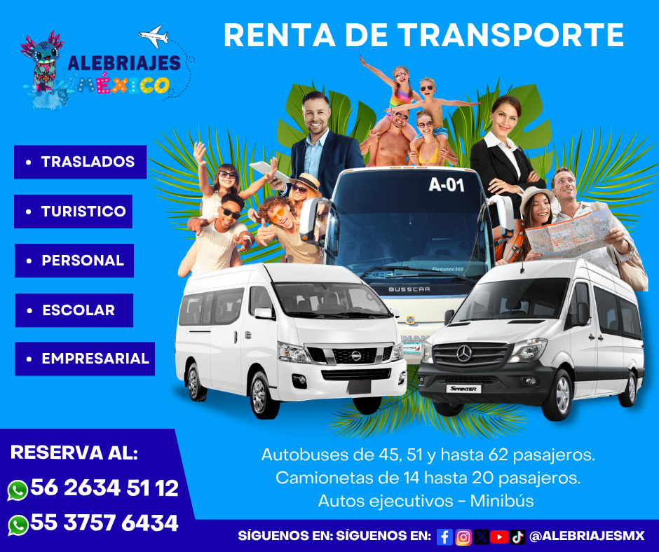 Renta nuestras unidades turísticas con conductor incluido y disfruta tu viaje sin preocupaciones.