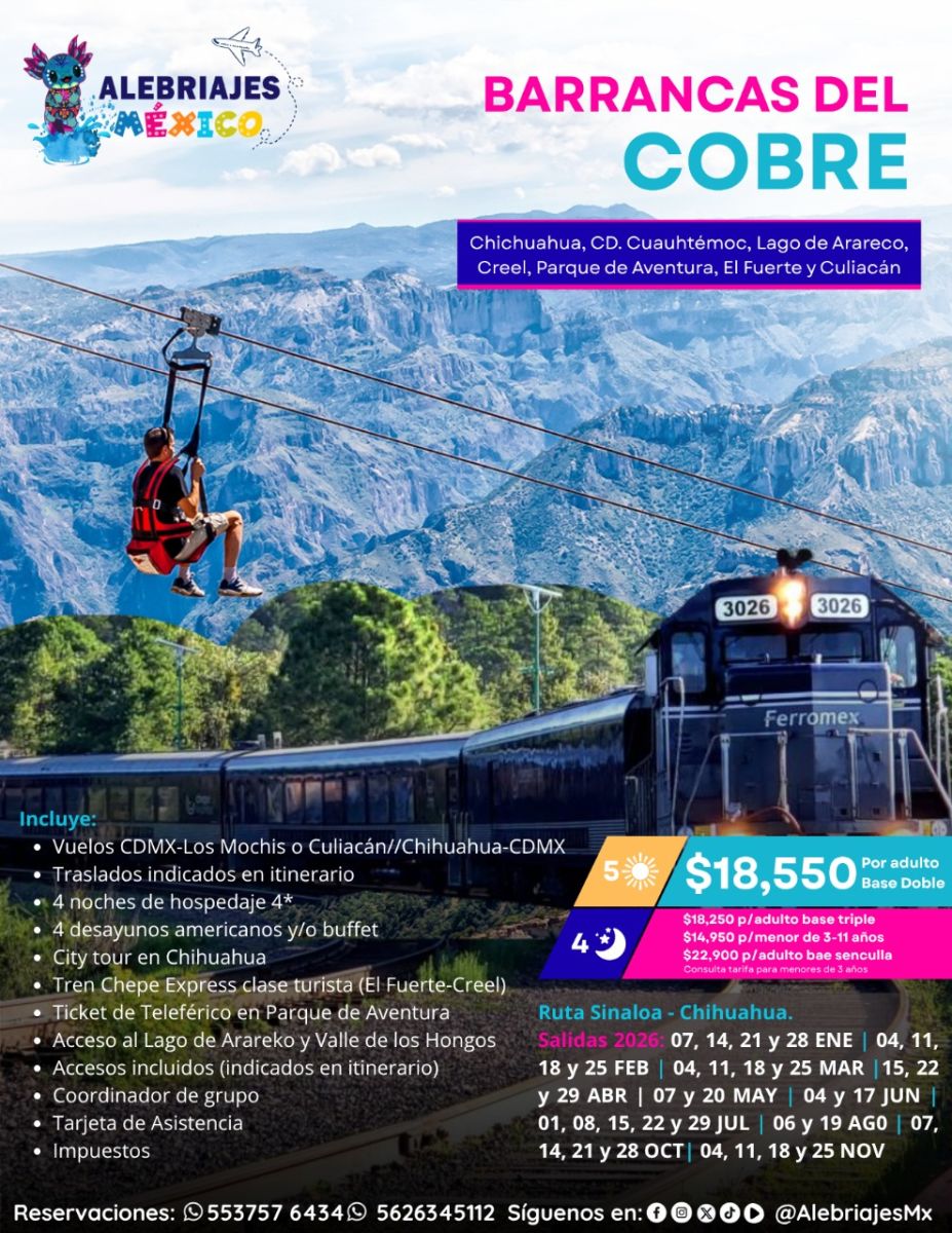 ¡Vive una aventura inolvidable entre cañones majestuosos, paisajes espectaculares y la magia de la Sierra Tarahumara!